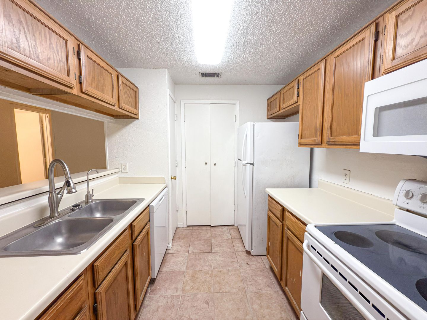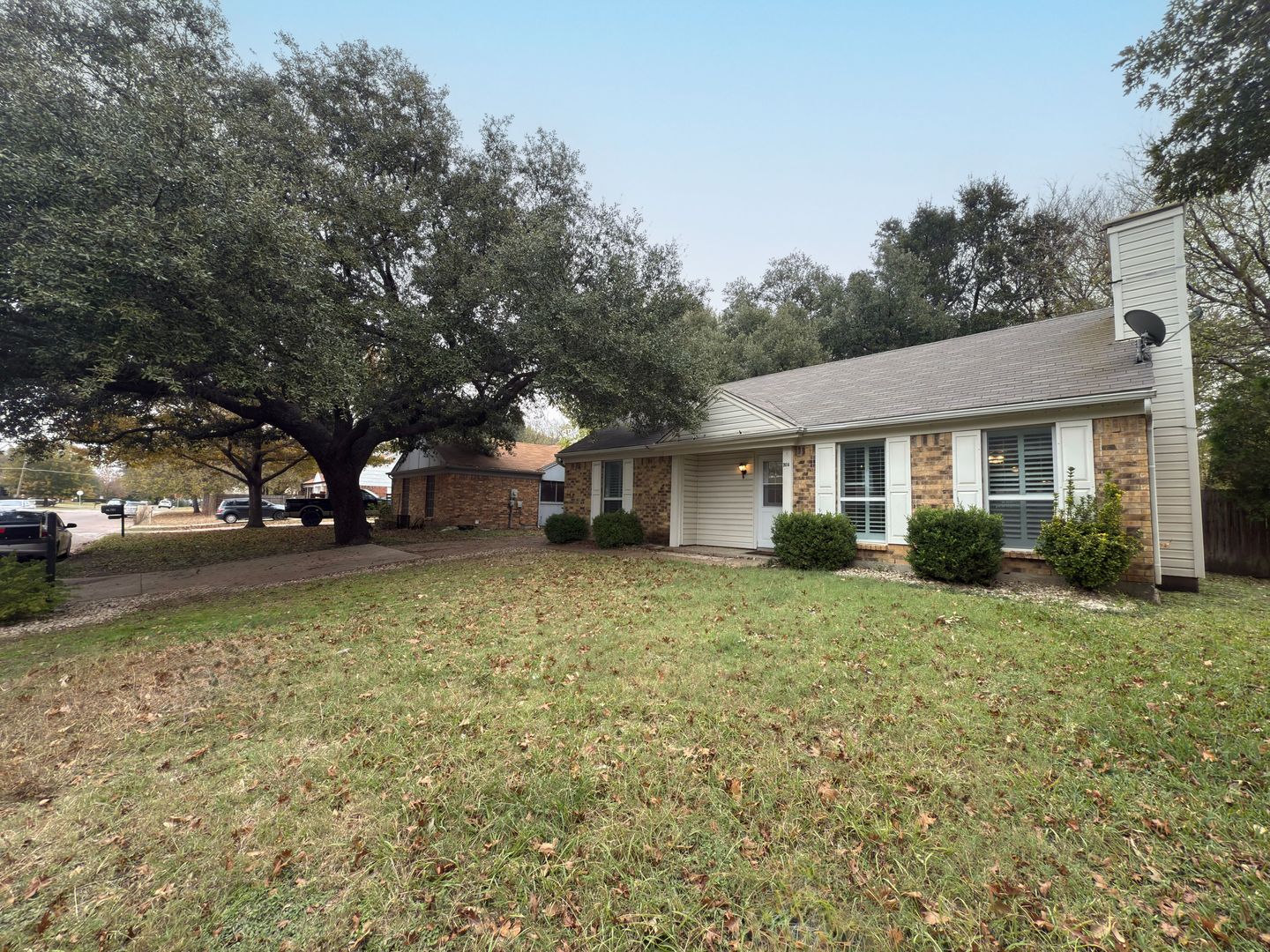 This home features an open living area with vaulted ceilings and a fireplace, a functional kitchen connected to the main living space, and a spacious primary suite with direct backyard access. Outside, enjoy a private corner-lot yard with mature trees!